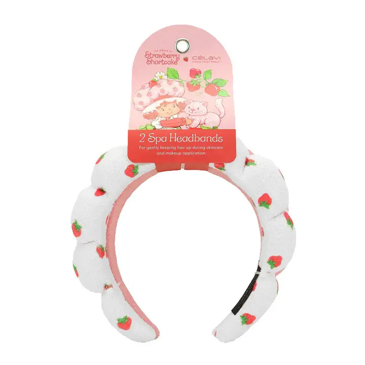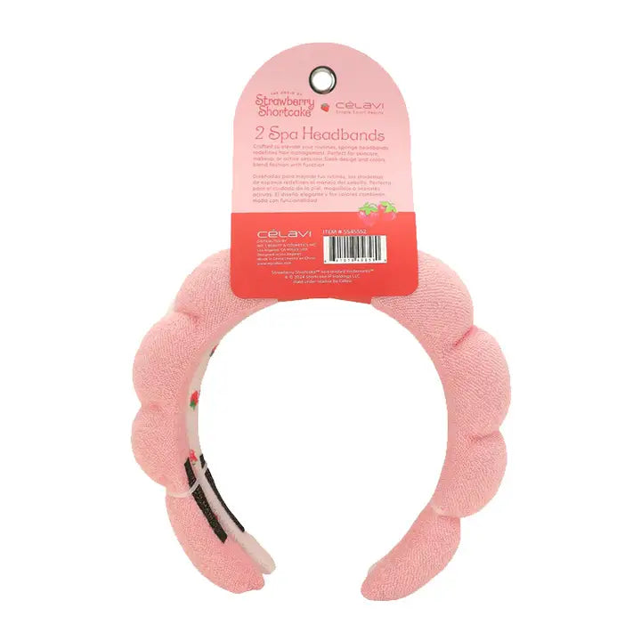 Strawberry Shortcake 2pc Spa Headband. Featuring an adorable Strawberry design, this set of soft, plush headbands keep hair neatly in place while pampering and doing any skin care regimen. Perfect for facials, makeup application, or just lounging, these headbands offer comfort and charm, making every self-care moment a little more fun. 2 pcs in 1 set.